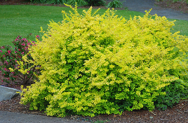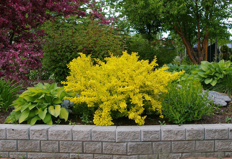 Саженцы Барбариса Тунберга Aurea (Ауреа) представляют собой ярко-желтый куст с примесью лимонного цвета. В пасмурную погоду растение создает ощущение наличия солнечного света.