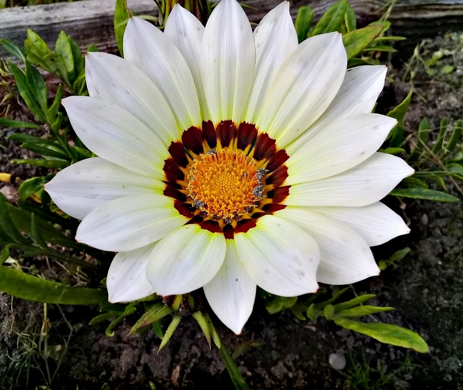 Газания Frosty Kiss White - это великолепное растение с белыми цветками, которое поражает своей изящностью и нежностью. Его стебель прочный и устойчивый, достигая высоты до 25 см, а диаметр цветка составляет 7 см. Листья газании имеют форму ланцета и создают красивый контраст с яркими цветками.