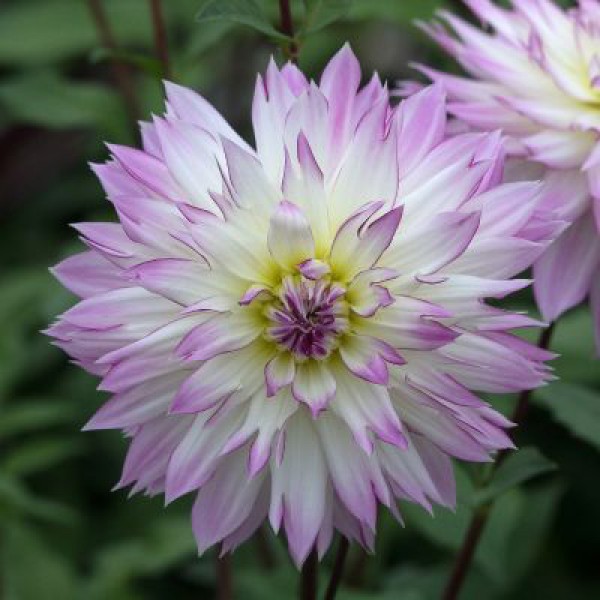 Рассада георгины декоративной Крейзи Лав (Dahlia decor Crazy Love) в середине июля расцветает крупными белыми цветами со светло-сиреневыми лепестками и яркой, четкой сиреневой окантовкой по краям лепестка. Высота растения 90-100 см, период цветения заканчивается в октябре. Для максимального комфорта требуется хороший дренаж почвы, обилие питательных веществ и воды, солнечное место, защищенное от сквозняков. Растение однолетнее, привлекательно выглядит в монопосадках в открытом грунте, смешанных композициях и срезанных букетах. Не имеет аромата и требований к соседству.