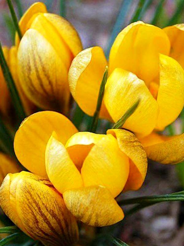 Луковицы крокуса ботанического Дороти (Dorothy) приживаются на светлых участках и вырастают в изящные растения с крупными желтыми цветами. Внешние лепестки бутонов покрыты коричневыми прожилками. Узкие темно-зеленые листья выгодно оттеняют яркие звезды цветов. Луковицы хорошо хранятся в сухих и прохладных помещениях до высадки. Цветение начинается ранней весной и длится до 15 дней.