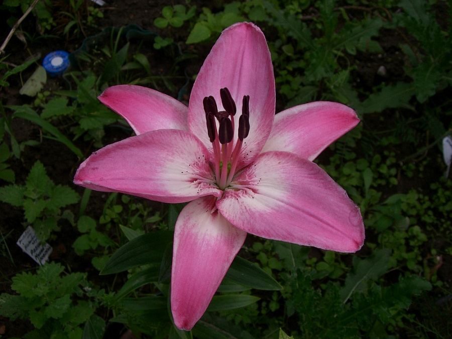 • Окраска цветка : Цветки плотной фактуры, розовые, кончики лепестков более насыщенные, центр белый с темно-розовым крапом; в горле ярко-розовые; направлены вверх