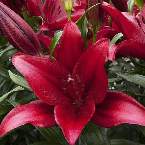 Луковицы Лилии ЛА-гибрид Атакама (Lilium Atacama) в период цветения раскроют всю красоту удачной селекции. От Лонгфлорум-гибридов сорт унаследовал высокий рост (до 130 см) и крупные цветки. Глубокий ровный насыщенно-красный цвет глянцевых лепестков, будто покрытых восковым налетом, радует любителей разноцветных красок в саду. Азиатская «родословная» сделала Атакаму выносливой, устойчивой к заболеваниям и самым сильным морозам. Лилия на много лет станет украшением сада, а в срезке она по праву займет место центрального элемента композиции.