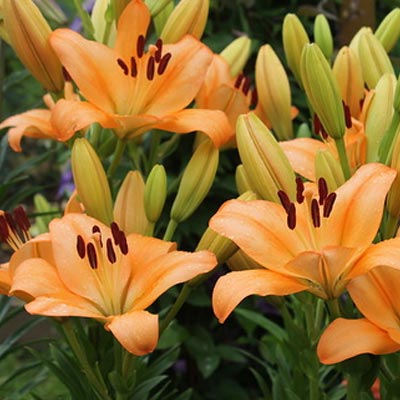 Саженцы и рассада декоративного цветка Лилия ла-гибрид Глоуб (Lilium la-gibrid Globe) прекрасно приживутся в солнечных или полутеневых посадках на дренированной, богатой питательными веществами почве. Растение вырастает до 110 см в высоту, в открытом грунте начинает цвести в июне (в теплых регионах), в средней полосе цветение начинается с июля, и сохраняет зелень листьев до глубокой осени. Цветки крупные диаметром 20 см, яркого насыщенного абрикосового цвета с темно-коричневыми тычинками. Прекрасно смотрится в групповых и смешанных посадках, часто используется для букетов как основной элемент.