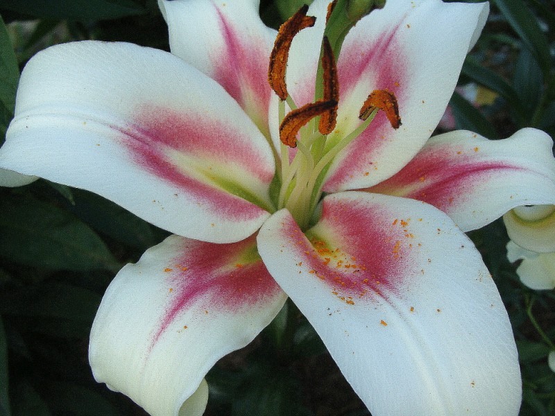 Лилия от-гибрид бонбини - это великолепное растение, которое поразит вас своей красотой и изысканностью. Ее стебель достигает высоты до 90-100 см, а цветки имеют размер впечатляющих 25 см. Лепестки белого цвета с бордовым оттенком создают неповторимый вид, а желто-зеленое горлышко придает цветку особую изюминку.