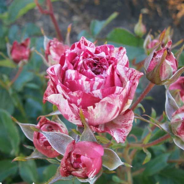 Саженцы розы спрей Arrow Folies отлично растут на солнечных участках с плодородной, увлажненной, нейтральной почвой, где нет застоя влаги. Сорт неприхотлив, отличается высокой зимостойкостью, устойчив к заболеваниям. Куст компактный, высотой всего до 60 см и шириной до 50 см. Побеги многочисленные, густооблиственные, с крупными шипами. Цветение непрерывное, продолжается с июня до сентября. Цветки махровые, диаметром 4-6 см, пурпурно-красного окраса с белыми полосами, с нежным ароматом. Срезанные бутоны могут длительное время стоять в воде и не терять привлекательности.